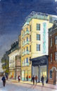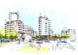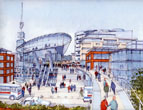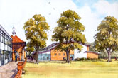 | Frequently used to support Planning Submissions, where context, colour and atmosphere are important. I produce these usually at A3 on heavy watercolour paper. Modern reproduction techniques enable them to be reduced or enlarged very sucessfully. Click on the image to enlarge it. | ||||