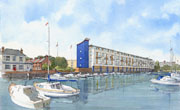 | Frequently used to support Planning Submissions, where context, colour and atmosphere are important. I produce these usually at A3 on heavy watercolour paper. Modern reproduction techniques enable them to be reduced or enlarged very sucessfully. Click on the image to enlarge it. | ||||